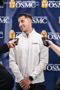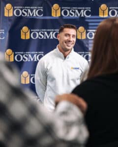 Now back in South Bend, Ian Book has been training daily on the Notre Dame campus, staying ready for any opportunity that may come from the NFL. In addition to his continued commitment to the game, he has taken on a new role as Director of Investor Relations for Golden Legacy, a boutique real estate firm led by fellow Notre Dame alumni. Book says the partnership with OSMC feels deeply personal: “For me, this partnership is about more than sports. It’s about helping people stay active, stay healthy, and keep doing what they love. That’s what OSMC stands for — helping you heal strong, perform better, and live your best life.”
